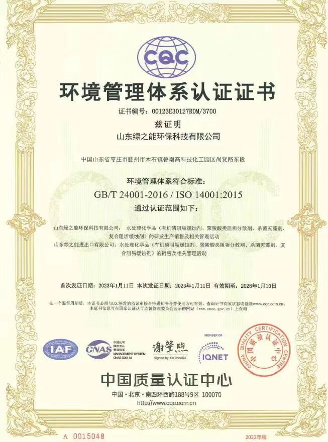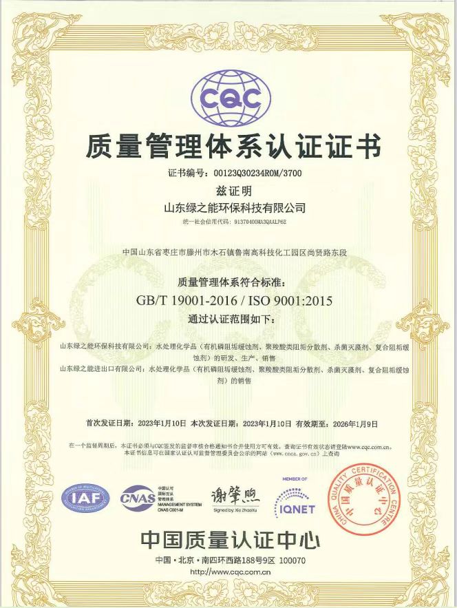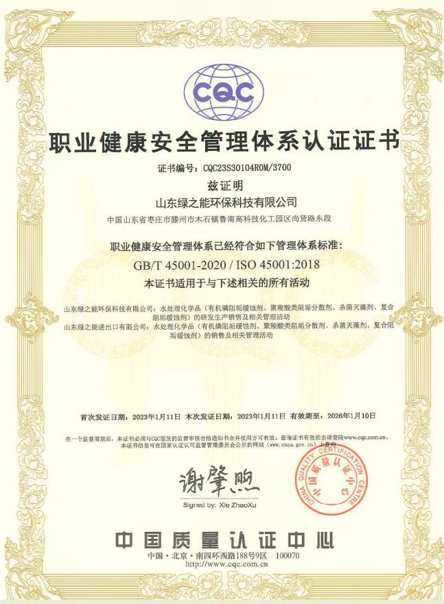 綠之能順利通過中國質(zhì)量認(rèn)證中心(CQC)的ISO專家評審組的審查,取得了ISO9001質(zhì)量管理體系認(rèn)證、ISO14001環(huán)境管理體系認(rèn)證、ISO45001職業(yè)健康安全管理體系認(rèn)證。